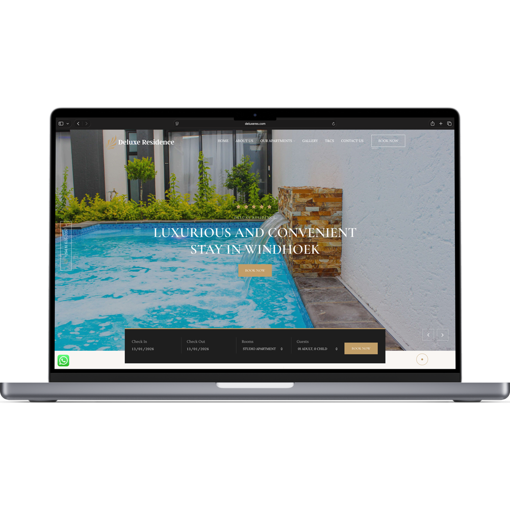 The Deluxe Residence website is a clean, modern hospitality platform designed to showcase luxury self-catering accommodation in Windhoek. It features a refined visual aesthetic, clear room listings, amenities highlights, and integrated booking functionality with PayGate payment integration, enabling secure online reservations and seamless payment processing. The site emphasises usability, mobile responsiveness, and a conversion-focused layout for accommodation enquiries and direct bookings.